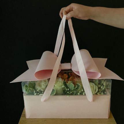 Цветы в коробке «Рассвет»( Роза Ароматная premium О Хара, Альстромерия )