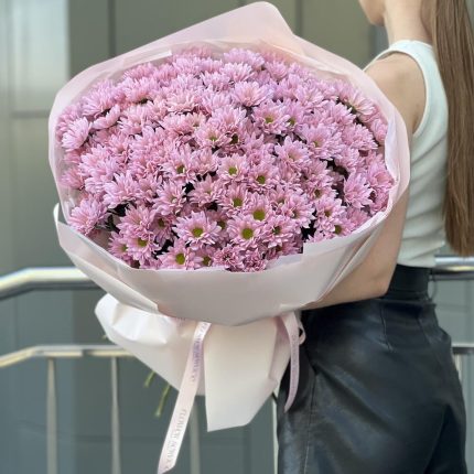 Яркая композиция из французских роз Найтингейл, хризантемы Момоко, ароматных нарциссов и маттиолы с эвкалиптом в коробке