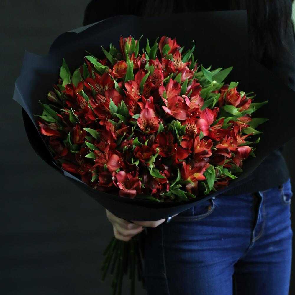 Букет из 41 альстромерии "Бордовый шелк"