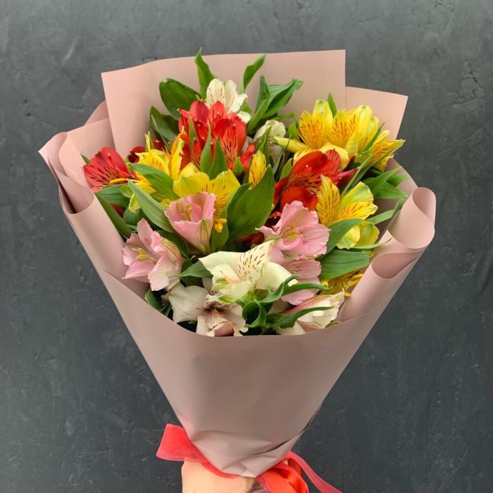 Букет из 9 разноцветных альстромерий в стильной упаковке