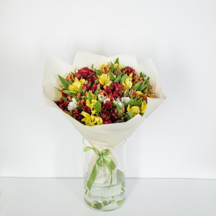 Альстромерия – 31 шт. Упаковка дизайнерская – 1 шт. Открыточка с вашими пожеланиями – 1 шт.