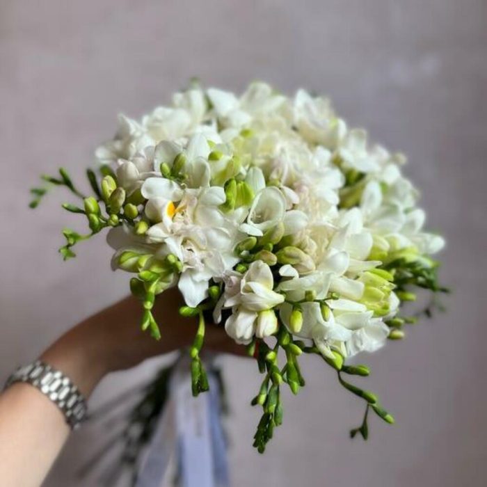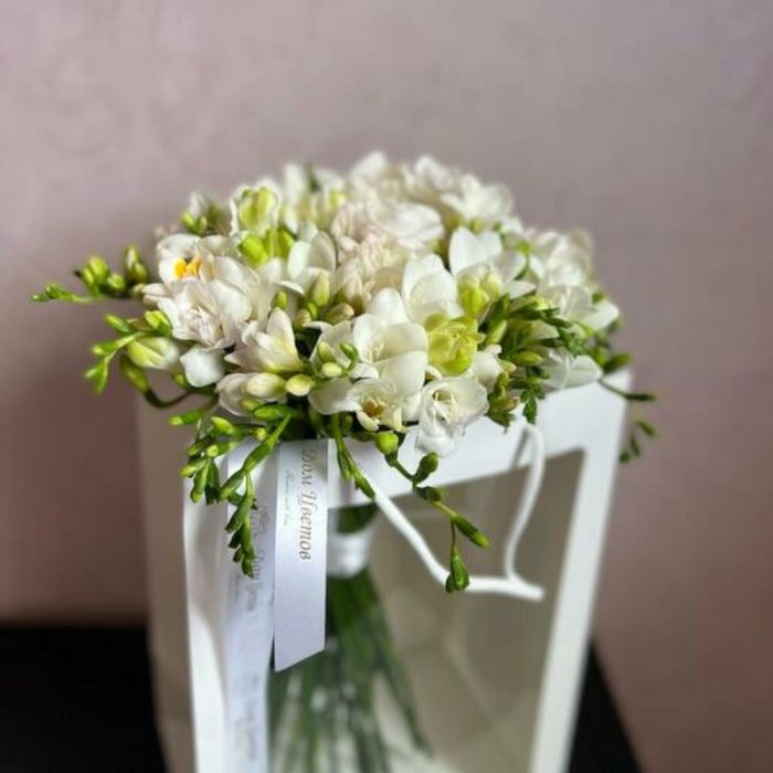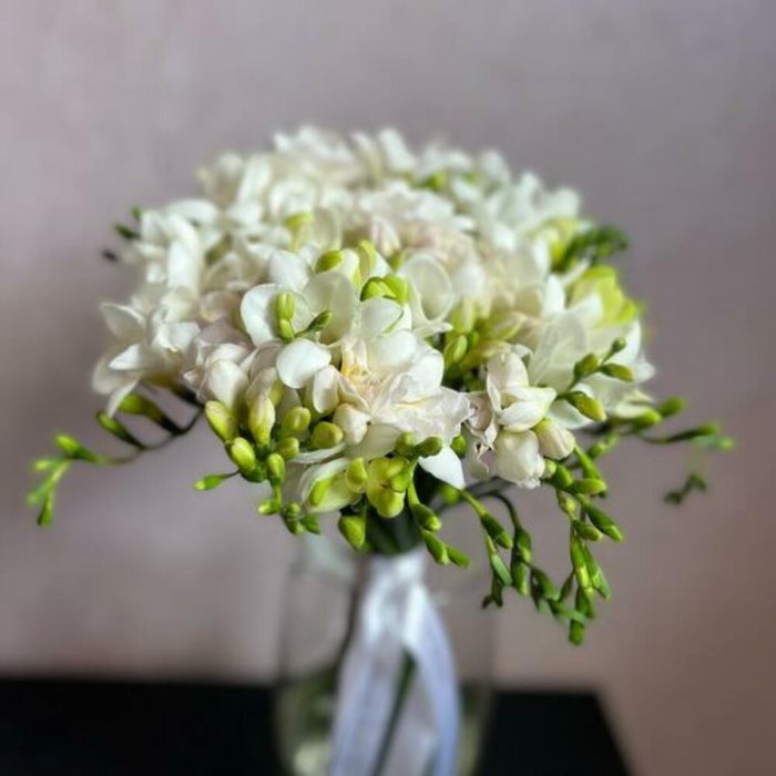 Фрезия – 31 шт.Атласная лента – 1 шт.