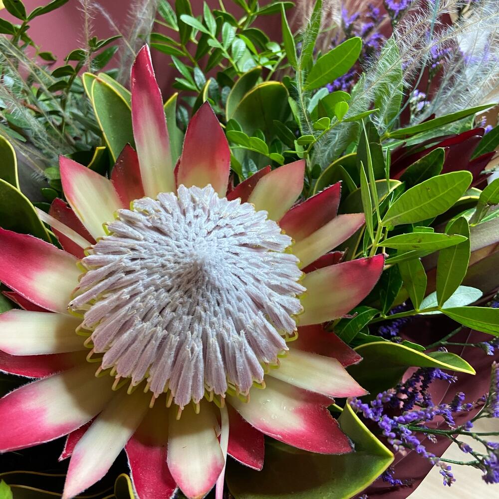 Лимониум – 1 шт.Писташ – 1 шт.Протея – 1 шт.Стифа – 3 шт.
