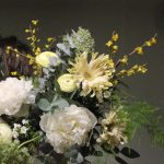 Пион – 2 шт.Амми – 2 шт.Ранункулюс – 3 шт.Фрезия – 2 шт.Гербера – 2 шт.флоксы – 3 шт.Эвкалипт – 5 шт.Лента – 1 шт.