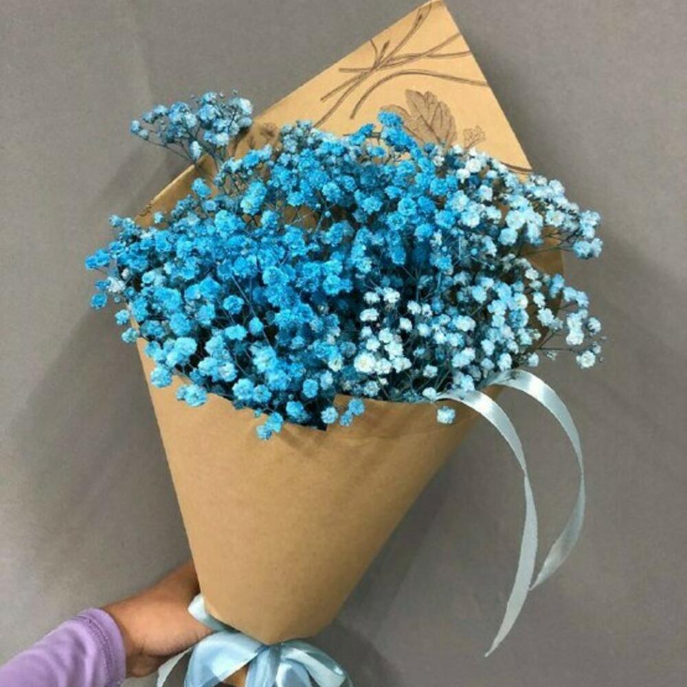 Гипсофила голубая – 2 шт.Крафт – 2 шт.Атласная лента – 2 шт.