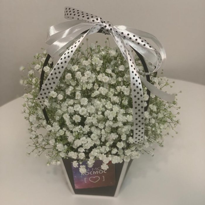 Гипсофила – 5 шт.Лента атласная – 2 шт.Оазис флористический – 1 шт.Сумочка картонная – 1 шт.