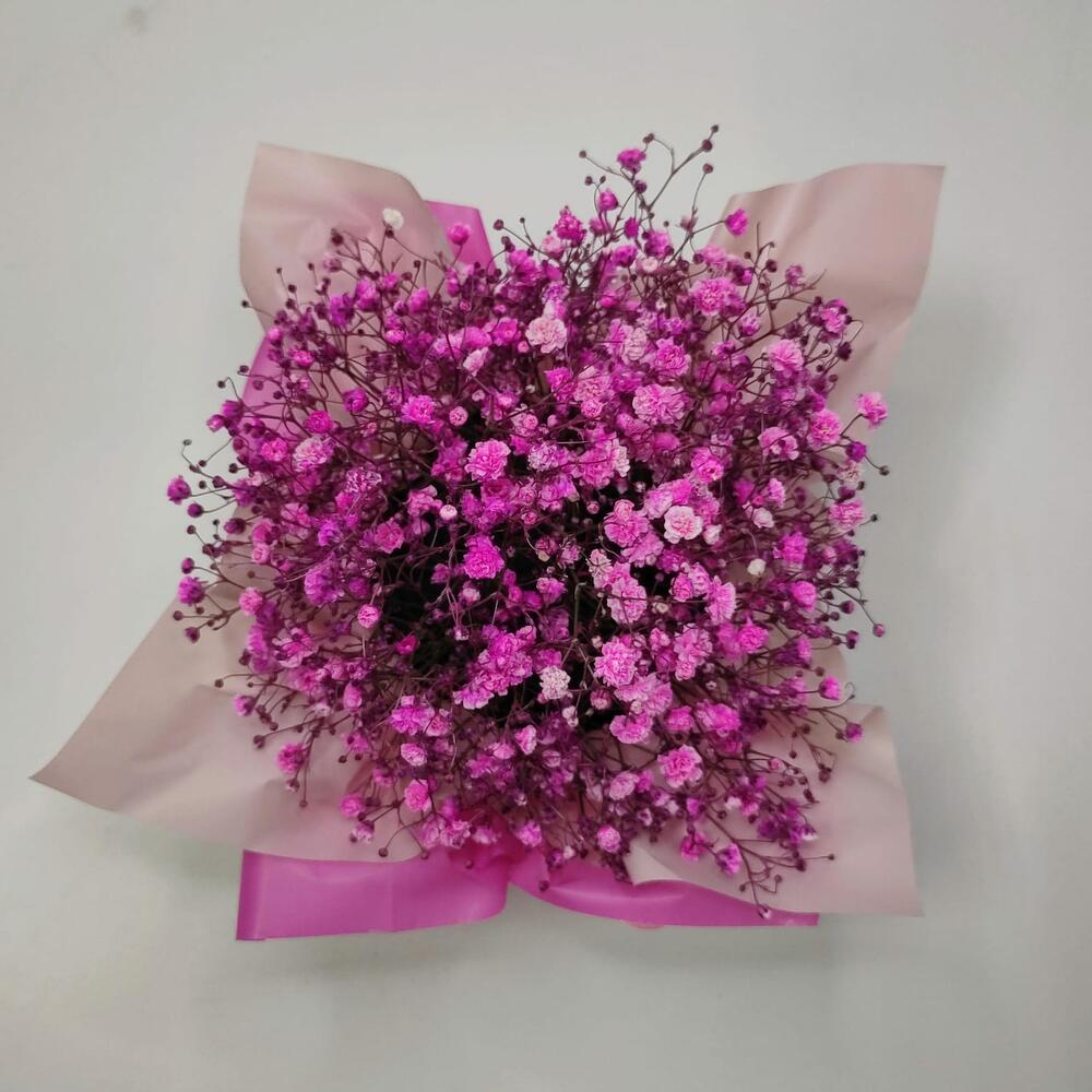 “Сиреневый туман” – композиция из гипсофилы в шляпной коробке
