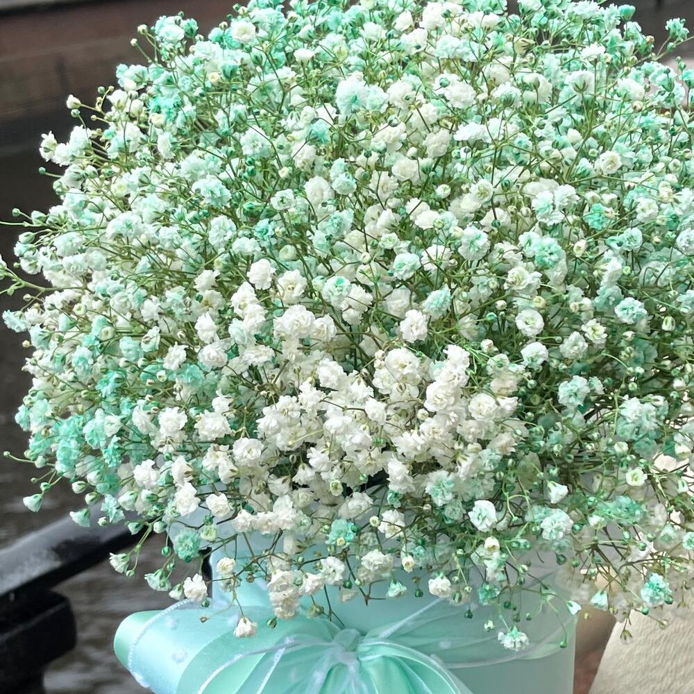 Гипсофила – 6 шт.Тишью – 1 шт.Коробка шляпная – 1 шт.Оазис флористический – 1 шт.Лента атласная – 1 шт.