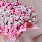 “Сиреневый туман” – композиция из гипсофилы в шляпной коробке
