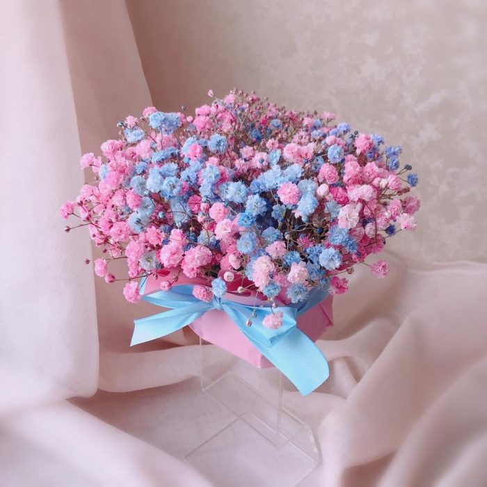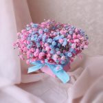 Мини композиция из розовой и голубой гипсофилы