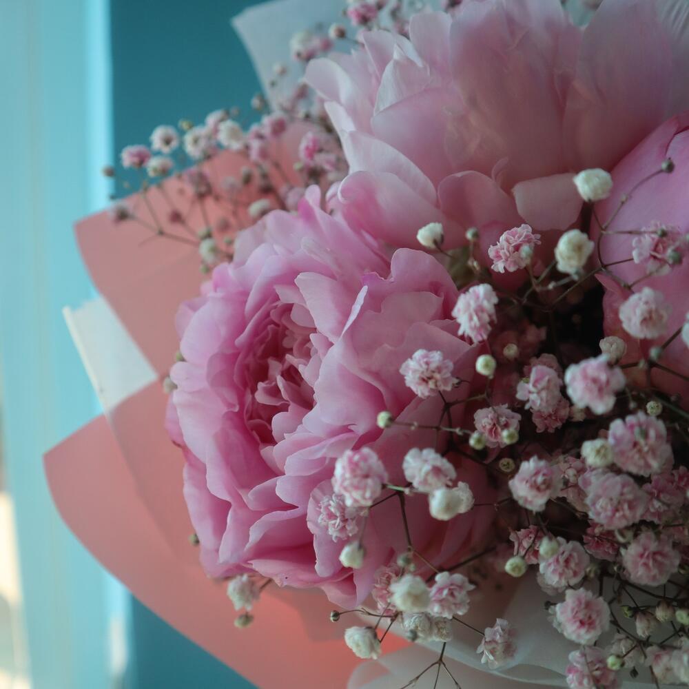 Розовые пионы с эвкалиптом