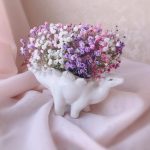 Кашпо керамическое – 1 шт.Флористическая губка (оазис) – 1 шт.радужная гипсофила – 3 шт.