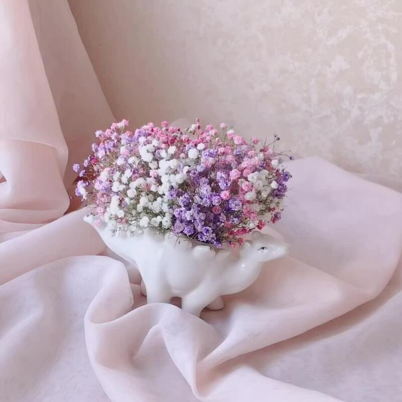 Радужная гипсофила в керамическом кашпо «Стегозавр»