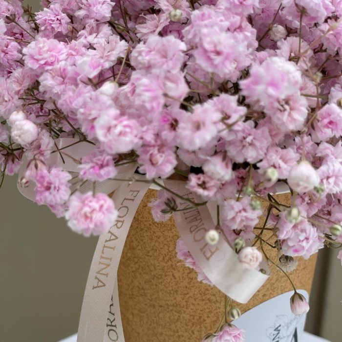 Стаканчик с гипсофилой – отличный вариант небольшого презента к основному подарку или просто так,без повода)Композиция имеет небольшой размер,ее удобно доставить домой или на работу Также она со временем превращается в сухоцвет и будет долго радовать своей красотой и … Показать ещёукрашать дом или рабочее место