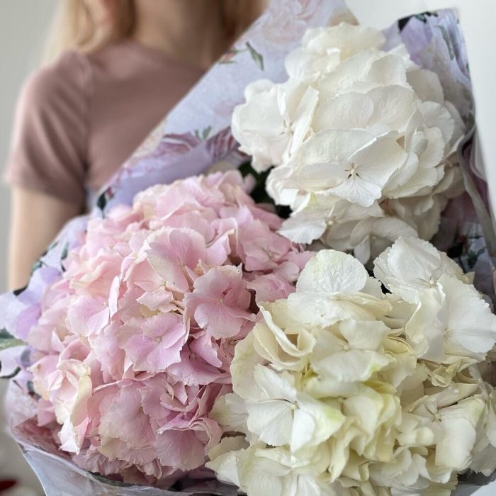 Монобукет из розовых и белых гортензий