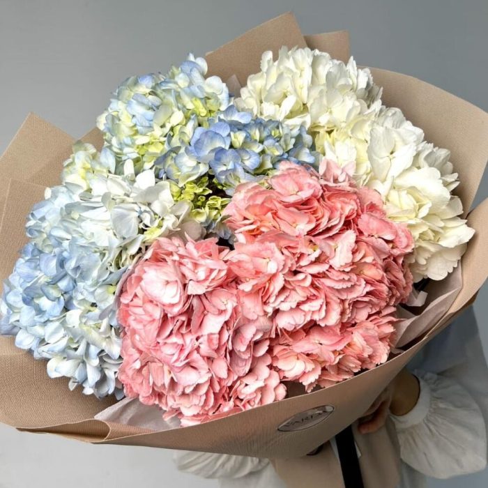 “Эвкалиптическая роскошь” гортензия и пионовидная кустовая роза