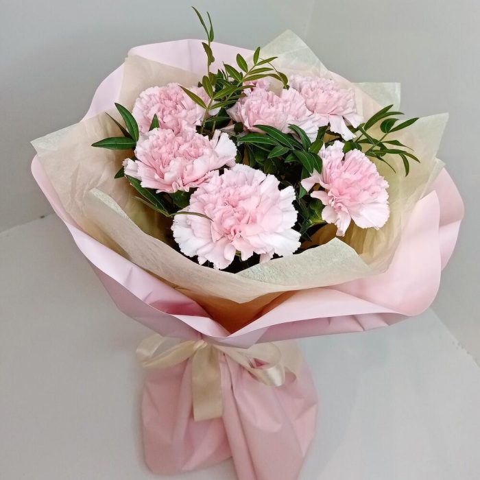 Букет из 7 гвоздик розовых с фисташкой