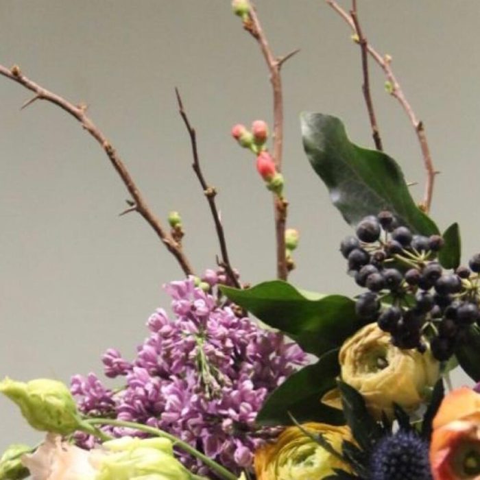 Букет с цветущими ветвями, колючками, лютиками, тюльпанами, плющом, сиренью, львиным зевом и гвоздиками.Букет приедет в подарочной коробке, с рекомендациями по уходу за цветами.При необходимости, если букет с нежными цветами или ему предстоит весомое время в дороге – то цветы мы отравляем на воде, останется лишь аккуратно снять кулёчек с водой и поставить букет в подходящую вазу.К каждому букету мы подписываем открытку с вашим посланием – эта услуга, так же в подарок.