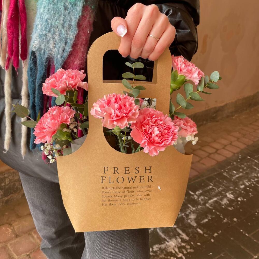 Стойкие гвоздики в крафтовой сумке