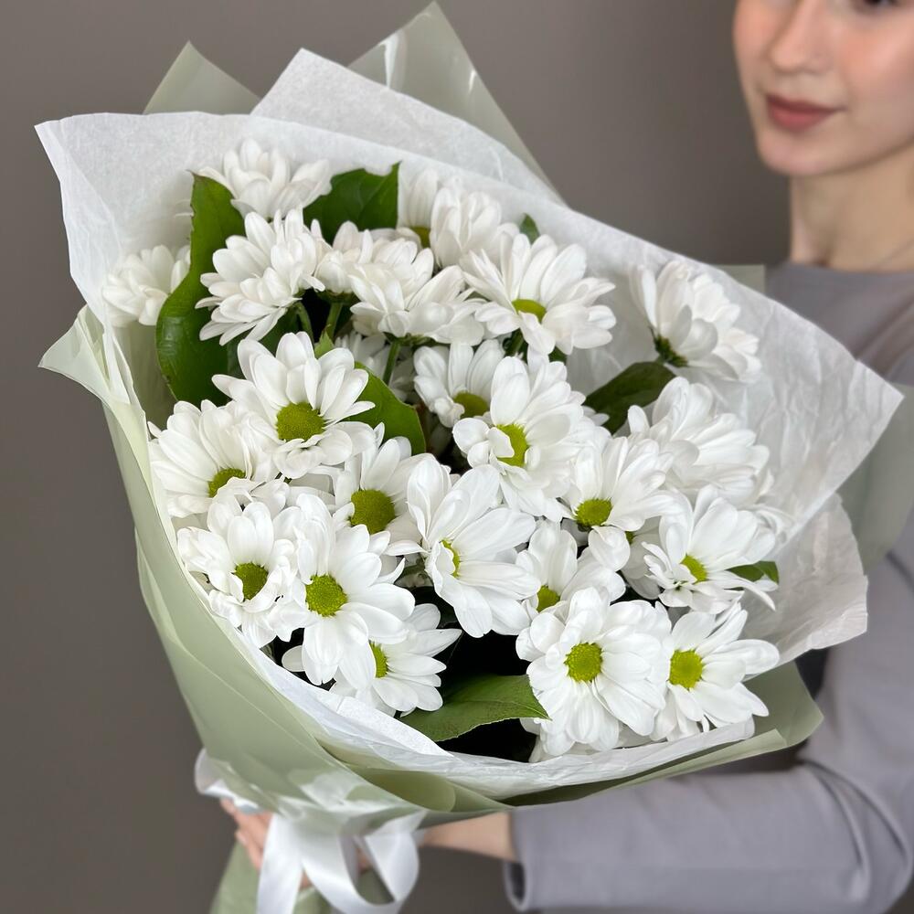 Букет хризантем (ромашковидных) с салалом, 5 шт