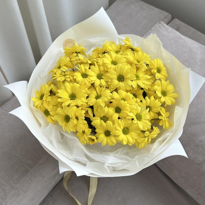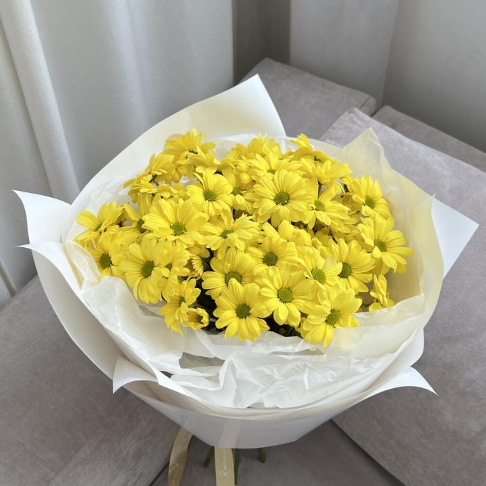 Хризантема Ромашковая – 7 шт.пленка матовая белая – 1 шт.тишью белая хрустящая – 1 шт.
