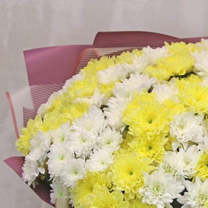 Букет из 25 кустовых хризантем микс в стильной упаковке