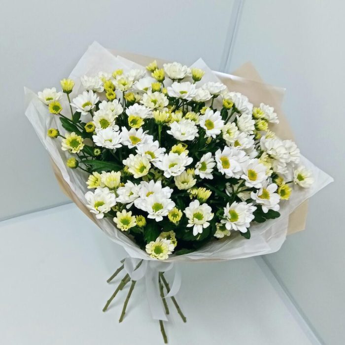 Хризантема кустовая Сантини – 9 шт.Дизайнерская упаковка – 1 шт.