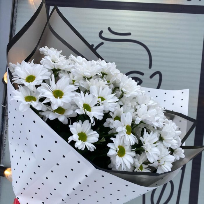Хризантема кустовая – 9 шт.Упаковка дизайнерская – 2 шт.Лента – 1 шт.