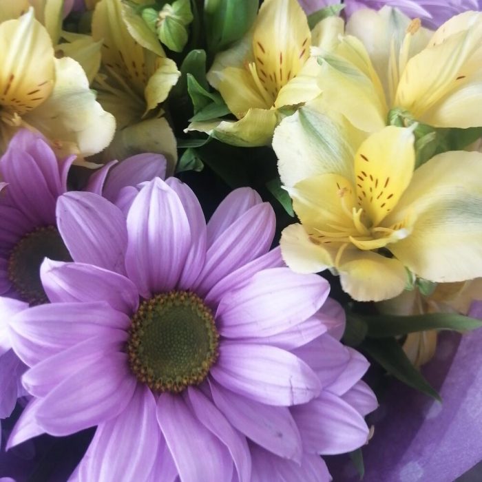 Альстромерия – 4 шт.Хризантема кустовая – 3 шт.Упаковка – 1 шт.