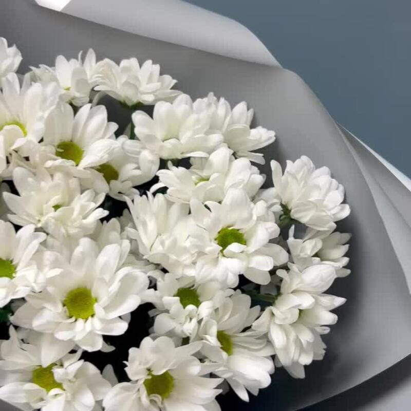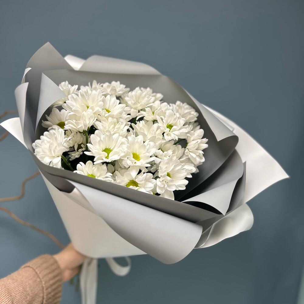 Хризантема кустовая – 5 шт.Упаковка – 2 шт.Лента атласная – 1 шт.