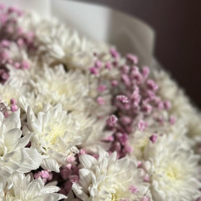 Букет из кустовой хризантемы и гипсофилы