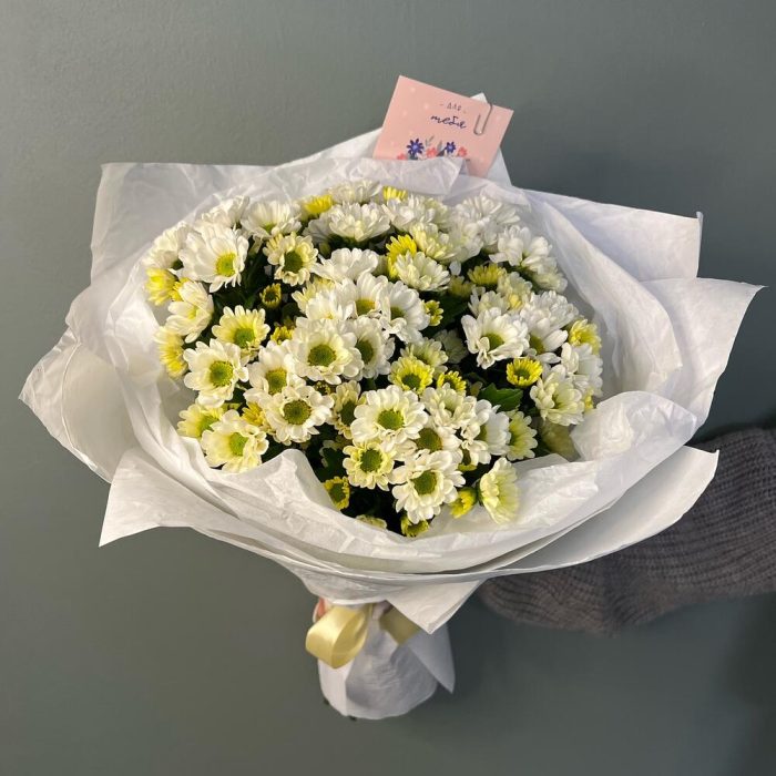 Хризантема Сантини – 7 шт.Открытка – 1 шт.Упаковка дизайнерская – 1 шт.