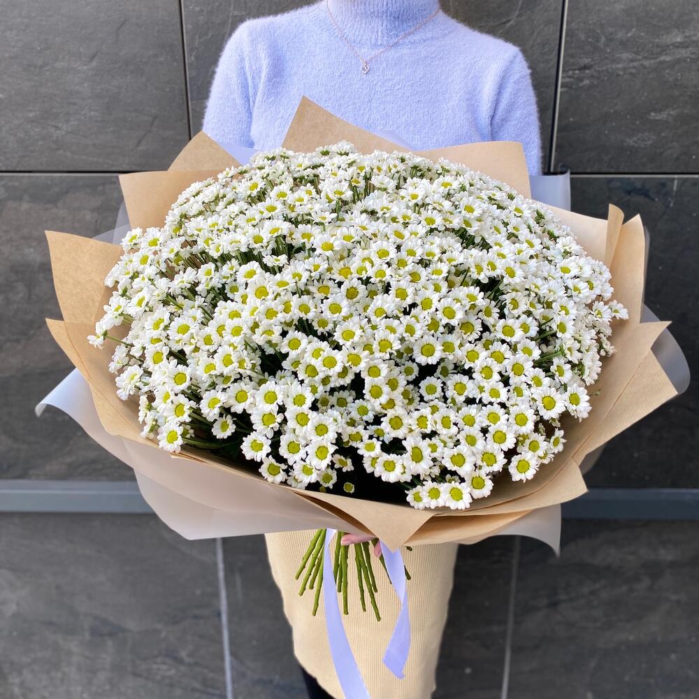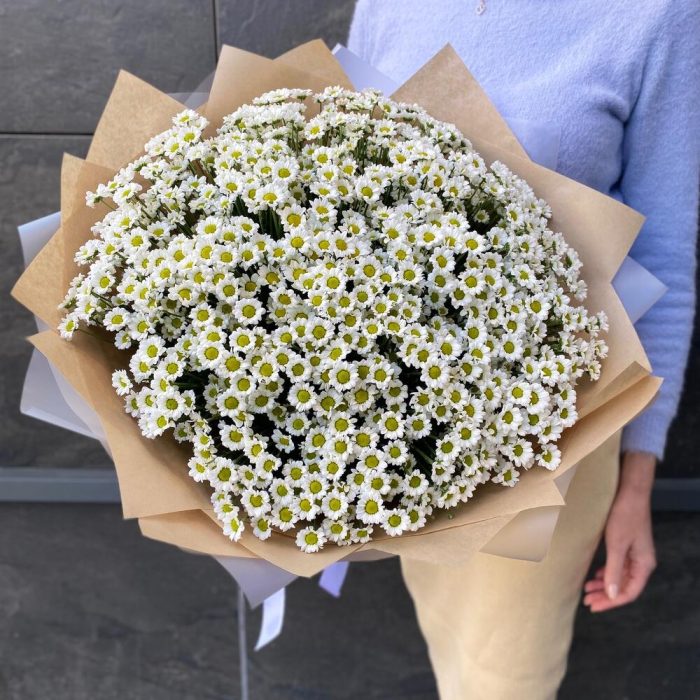 Пышный букет с ромашками (сантини) в крафте