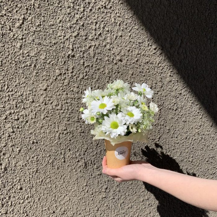 Лимониум – 1 шт.Оазис – 1 шт.Сантини – 1 шт.Стакан – 1 шт.хризантема кеннеди – 1 шт.