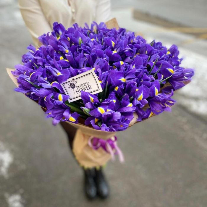 Букет из 75 ирисов в стильной упаковке “Стерлинг”