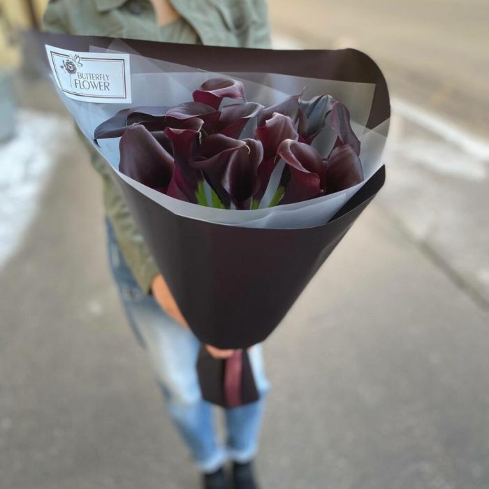 Букет из 17 бордовых калл “Аперетиво”