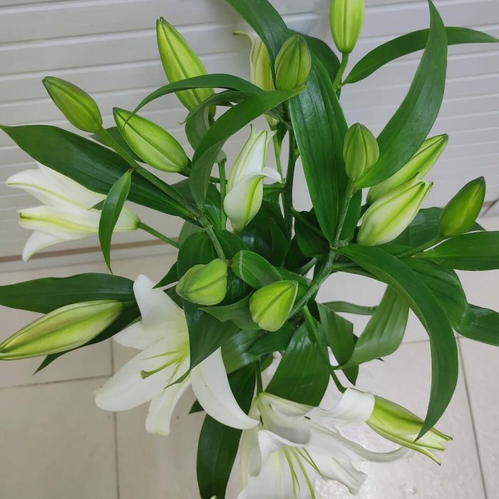 Лилия ориентальная – 3 шт.Лента атласная – 1 шт.
