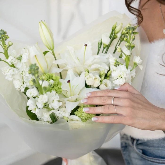 Белоснежный букет с лилией и маттиолой