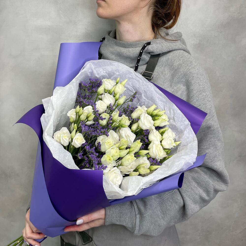 Лизиантус – 7 шт.Лимониум – 3 шт.Упаковка дизайнерская – 1 шт.
