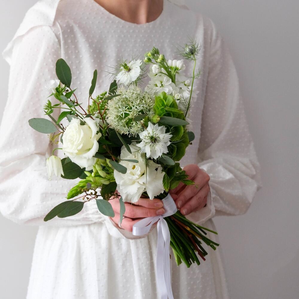 Букет невесты в Бело зелёной гамме
