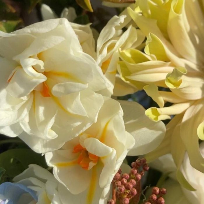 Букет с нарциссами и хелеборусом
