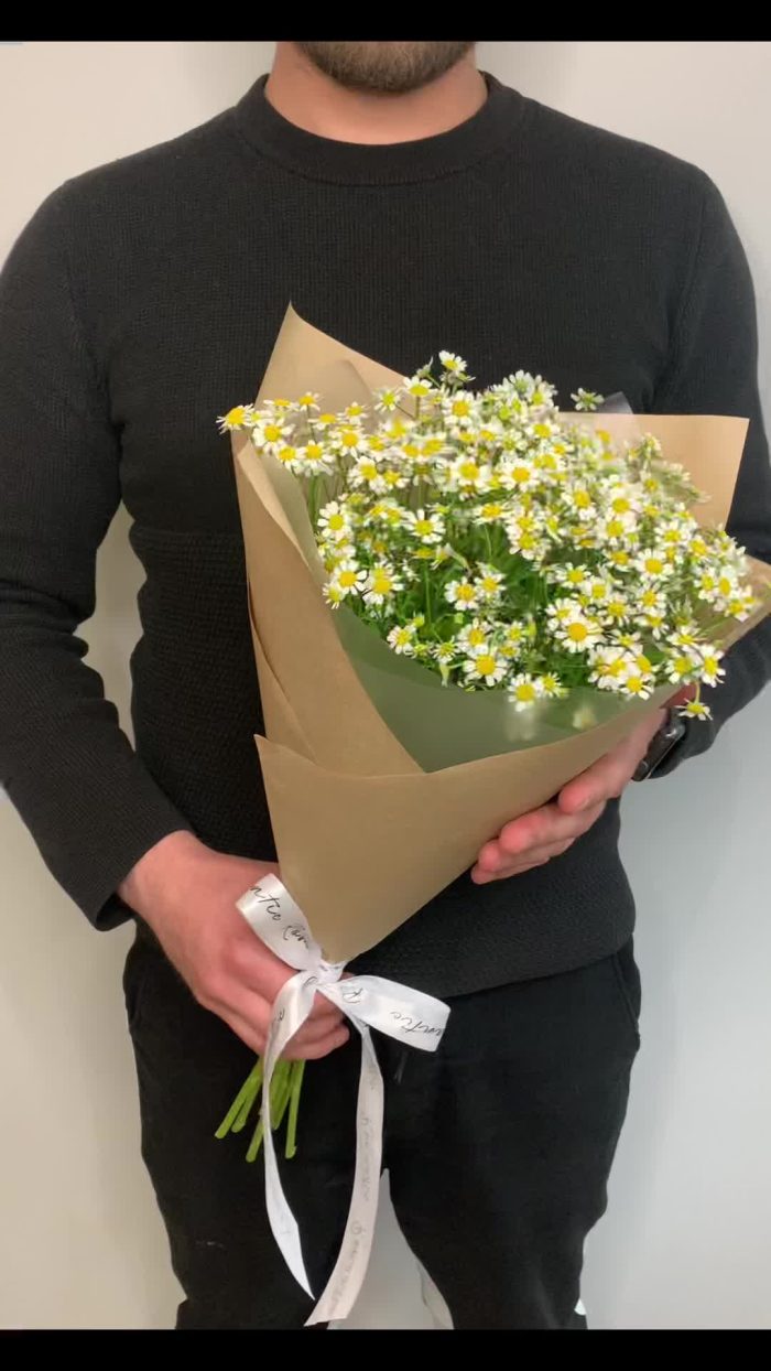 Танацетум – 7 шт.Лента атласная – 1 шт.Крафт – 1 шт.
