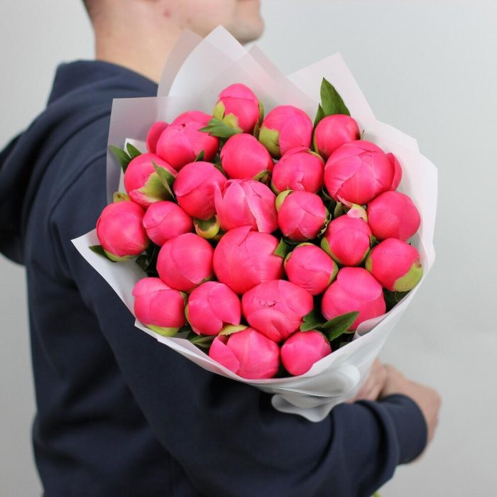 Лента атласная – 1 шт.Упаковка дизайнерская – 4 шт.Пион коралл шарм – 25 шт.