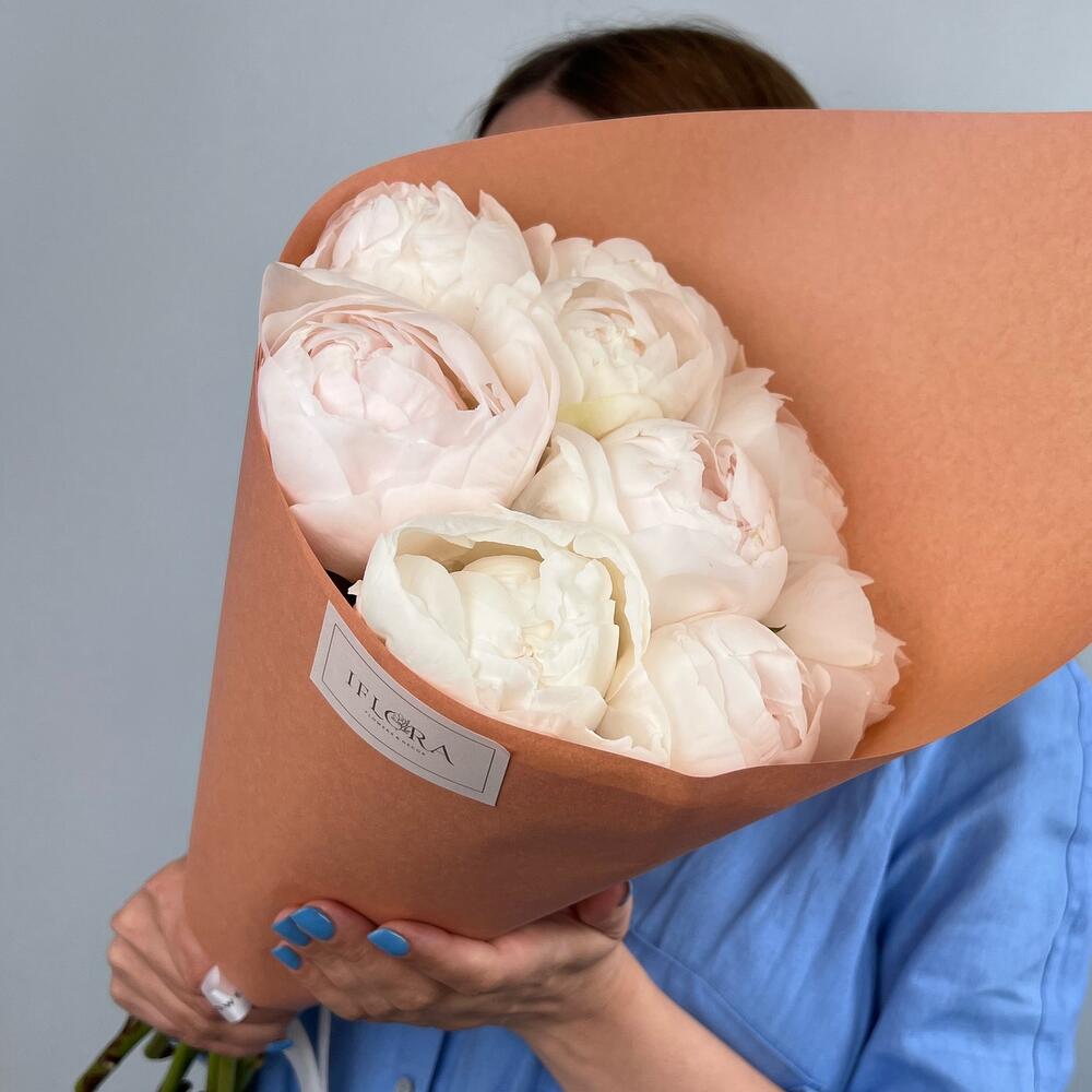 Ароматный букет из 9 пионов в дизайнерской упаковке