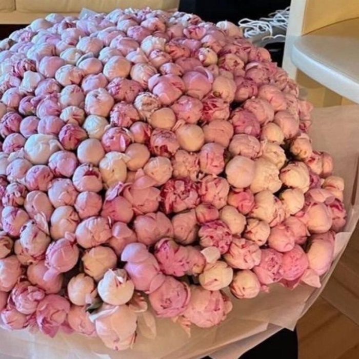 Пион Сара Бернар – 201 шт.Упаковка дизайнерская – 1 шт.Лента атласная – 2 шт.Открыточка с вашими пожеланиями – 1 шт.хорошее настроение – 100 шт.инструкция по уходу за цветами – 1 шт.коробка переноска – 1 шт.Кризал – 1 шт.