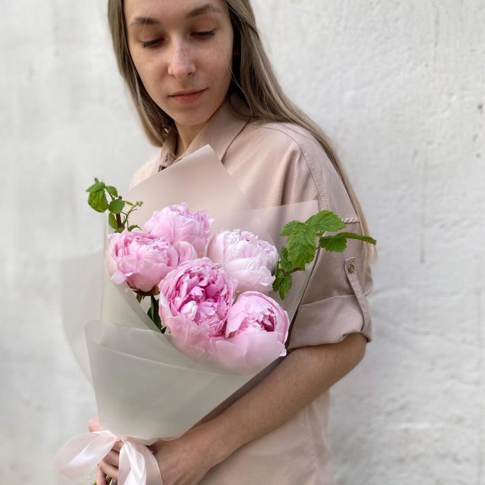 Пион Сара Бернар – 5 шт.ветка малины – 1 шт.упаковке дизайнерская – 1 шт.