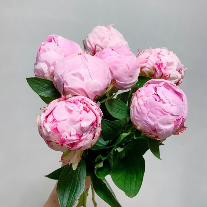 Лента – 2 шт.Пион Сара Бернар – 7 шт.Средство для продления жизни цветов – 2 шт.инструкция по уходу за цветами – 1 шт.