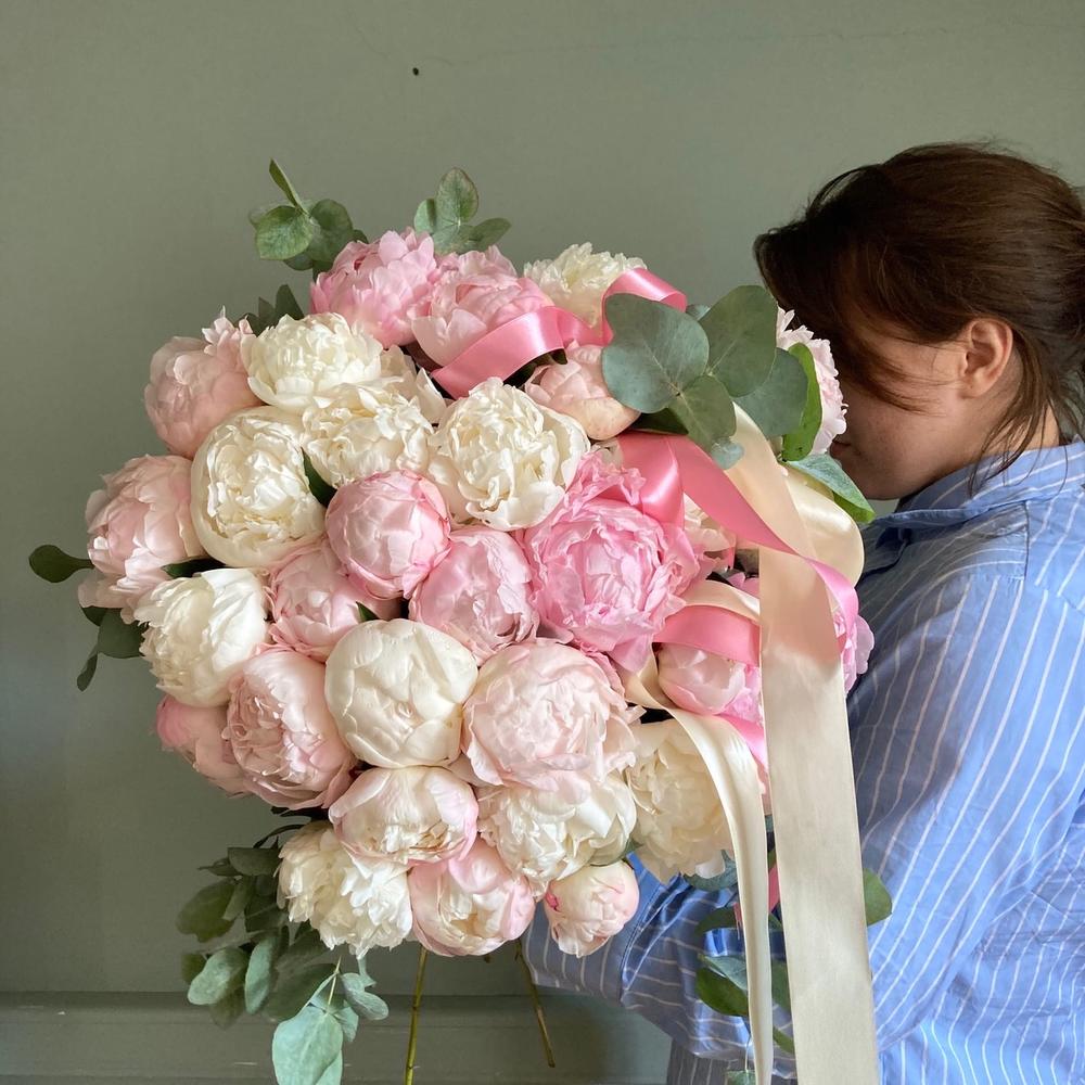 Пион – 31 шт.Эвкалипт – 7 шт.Лента атласная – 2 шт.