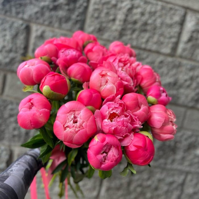 Пион коралл сансет – 21 шт.Лента атласная – 2 шт.