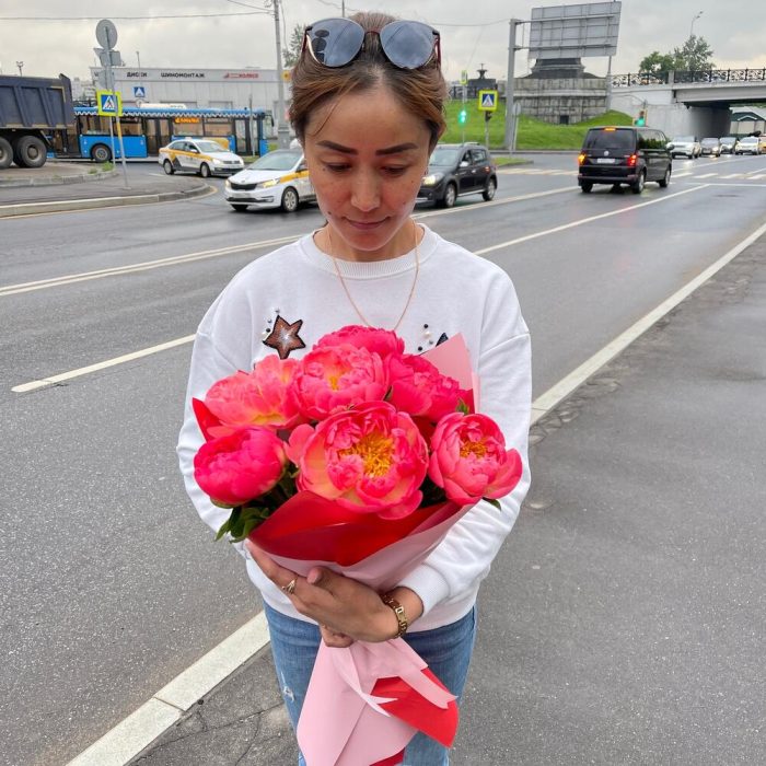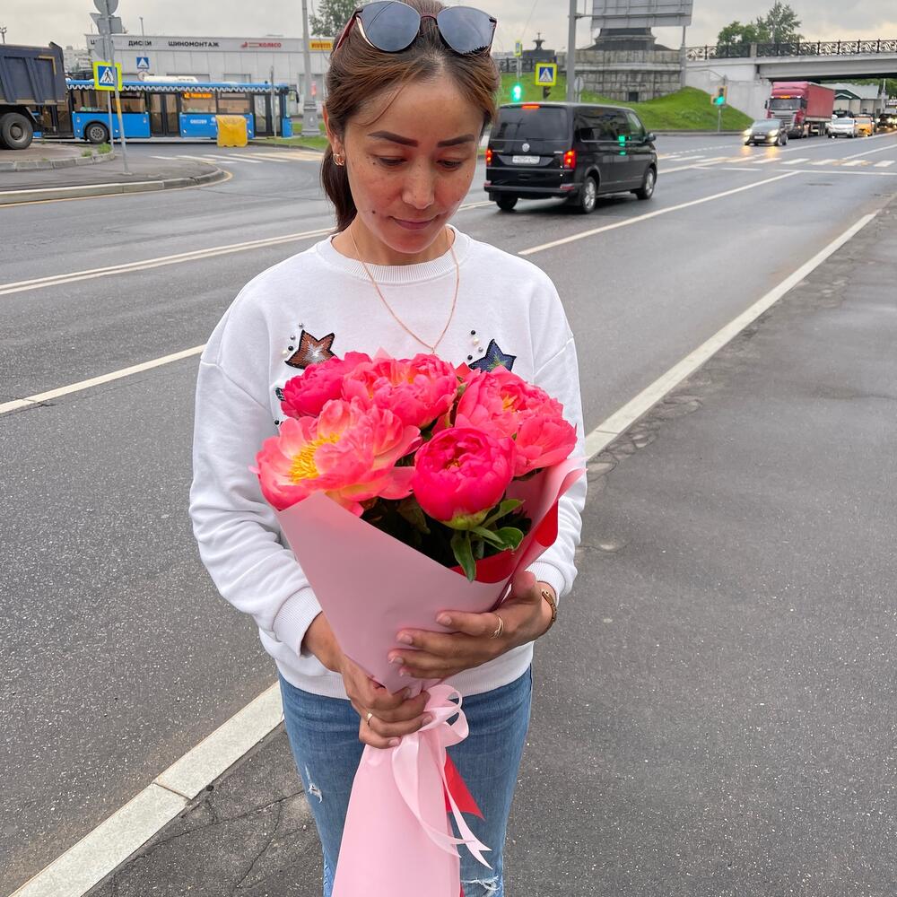 Пионы Корал Шарм с эвкалиптом
